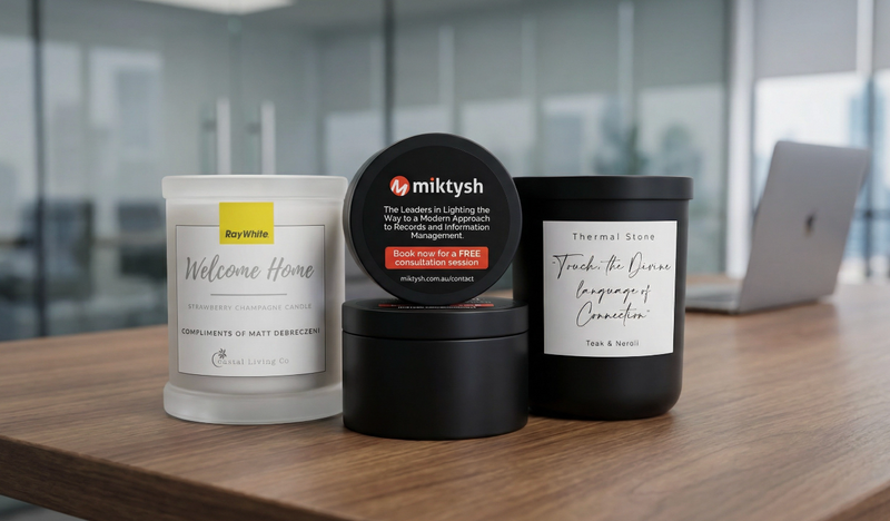 Create lasting impressions with custom-branded candles for real estate, corporate gifts, and hospitality.